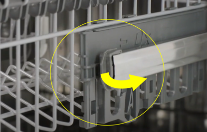 - Schuif de rail naar de voorkant van de vaatwasser om deze te verwijderen.