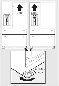 De koelkast moet zo worden geplaatst dat je makkelijk toegang hebt tot een keukenaanrecht voor wanneer je voedsel uit de kast neemt. Voor een optimaal gebruik van koelkastladen en diepvriesmanden, moet de koelkast in een positie staan waarin beide volledig kunnen worden geopend. - Kast waterpas zetten en koelkastdeur uitlijnen (indien nodig)
