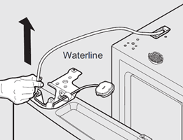 OPMERKING: Er kan ongeveer 1,20 meter waterslang uit de koelkastdeur worden getrokken.