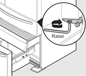 Om de kast waterpas te zetten met behulp van de voorste rolwieltjes: